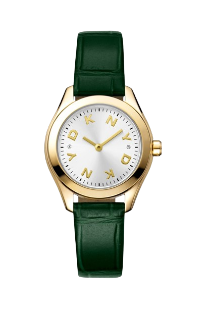 MK, montre femme bracelet cuir bleu nuit cadran or