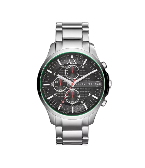 Armani Exchange,Montre en cuir noir imprimé fond noir pour femme.