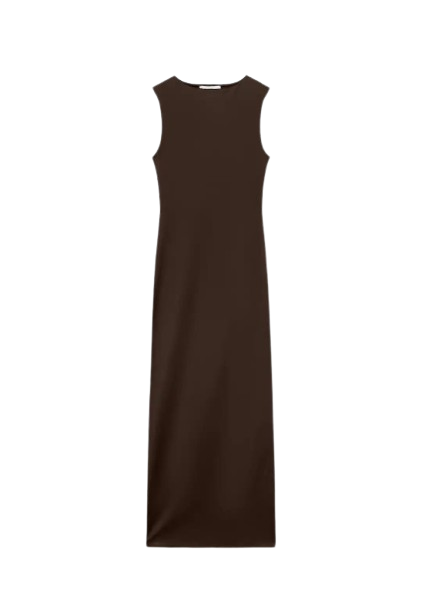 Tissu en maille côtelée. Coupe midi. Ajusté. Col rond. Sans manches. Bretelles larges. Sans fermeture. Liserés contrastants.coton
