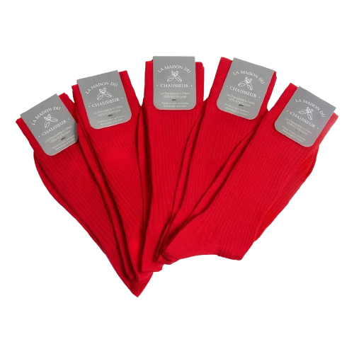 La Maison du Chausseur - Chaussettes Semainier x 5 - 100% fil d'Ecosse - rouge