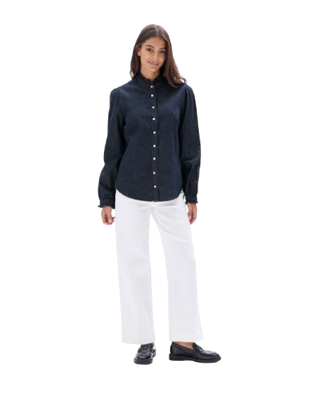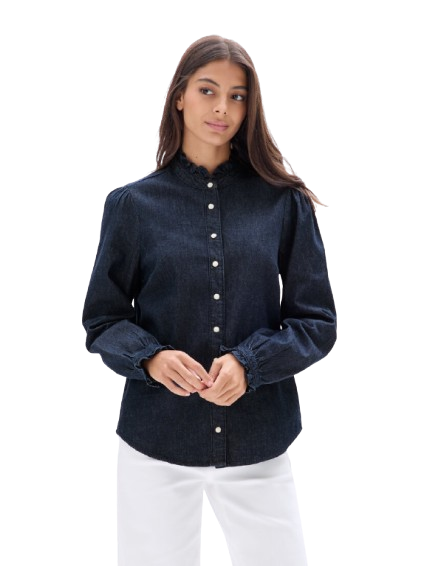 blouse classique camaïeu col à petit volant denim